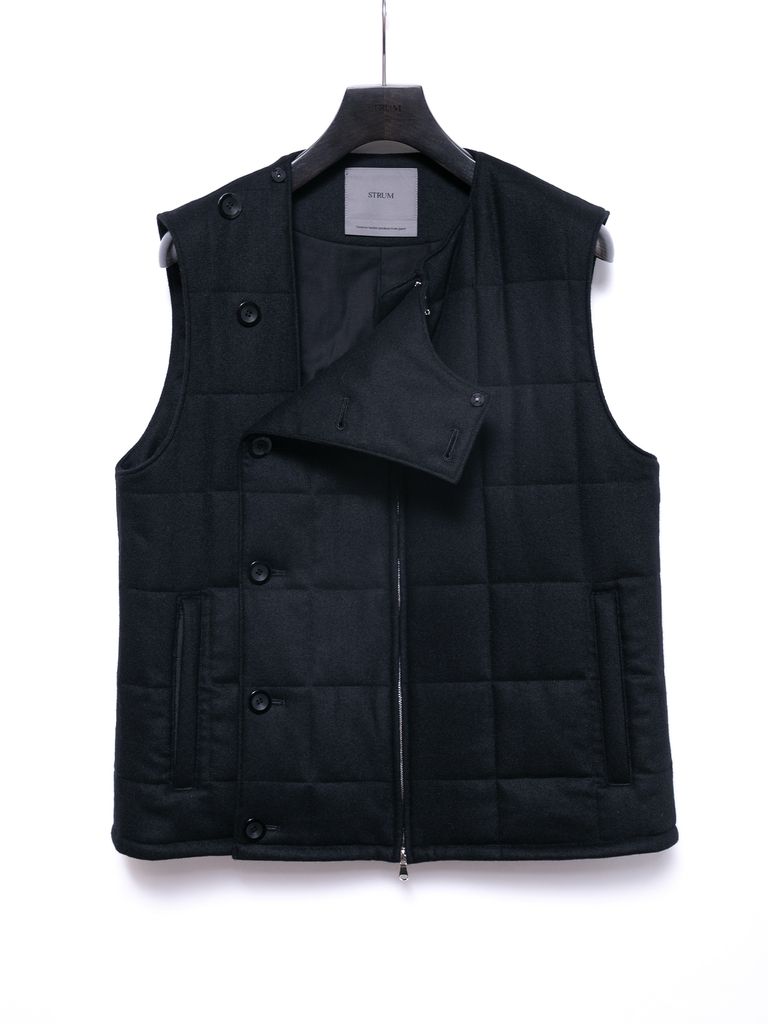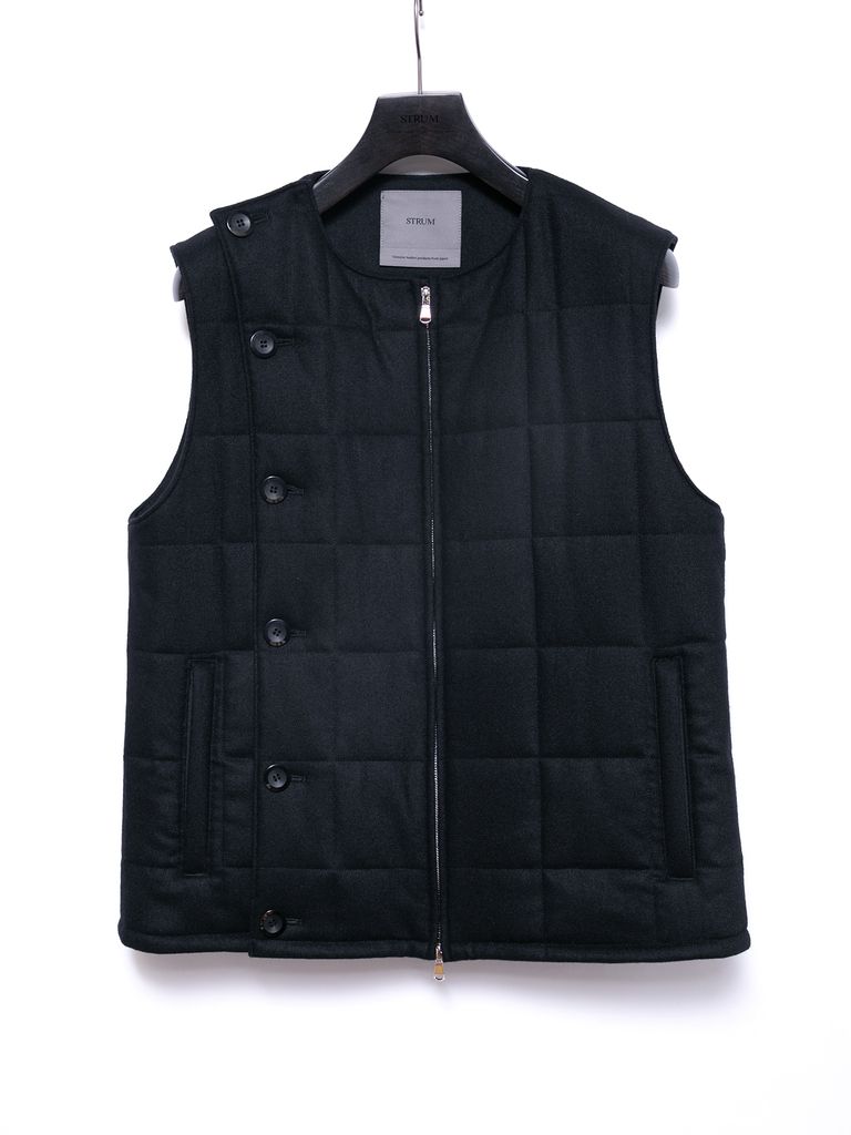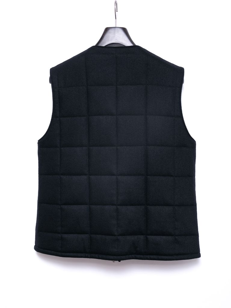 【予約品 4月6日(月) 締切】Stretch recycled wool cashmere blend Twill Quilted Track Vest / カシミア混 ストレッチ リサイクルウール ツイル 高機能中綿トラックベスト / ブラック