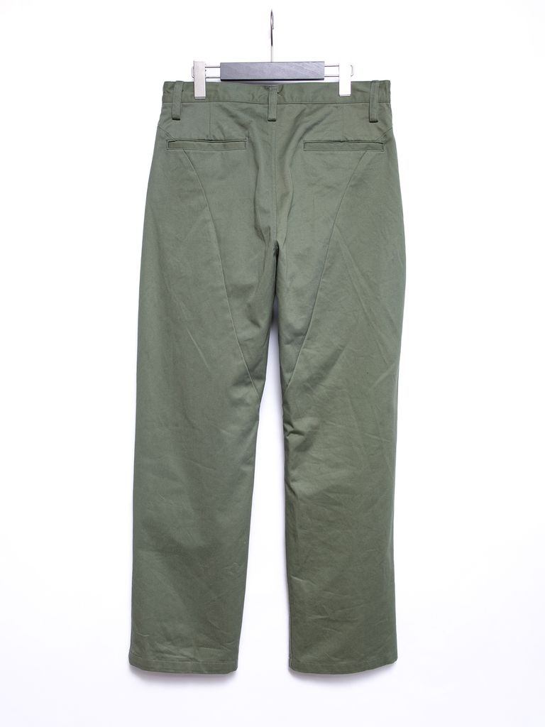 【予約品 4月6日(月) 締切】Cotton High-count Chino cloth Wide Tapered Pants / コットン ハイカウント チノクロス ワイドテーパードパンツ / オリーブ