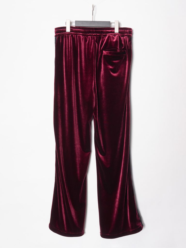 【予約品 4月6日(月) 締切】Stretch Tricot Velour Wide Track Pants / ストレッチ トリコット ベロア ワイド トラック パンツ / ワイン