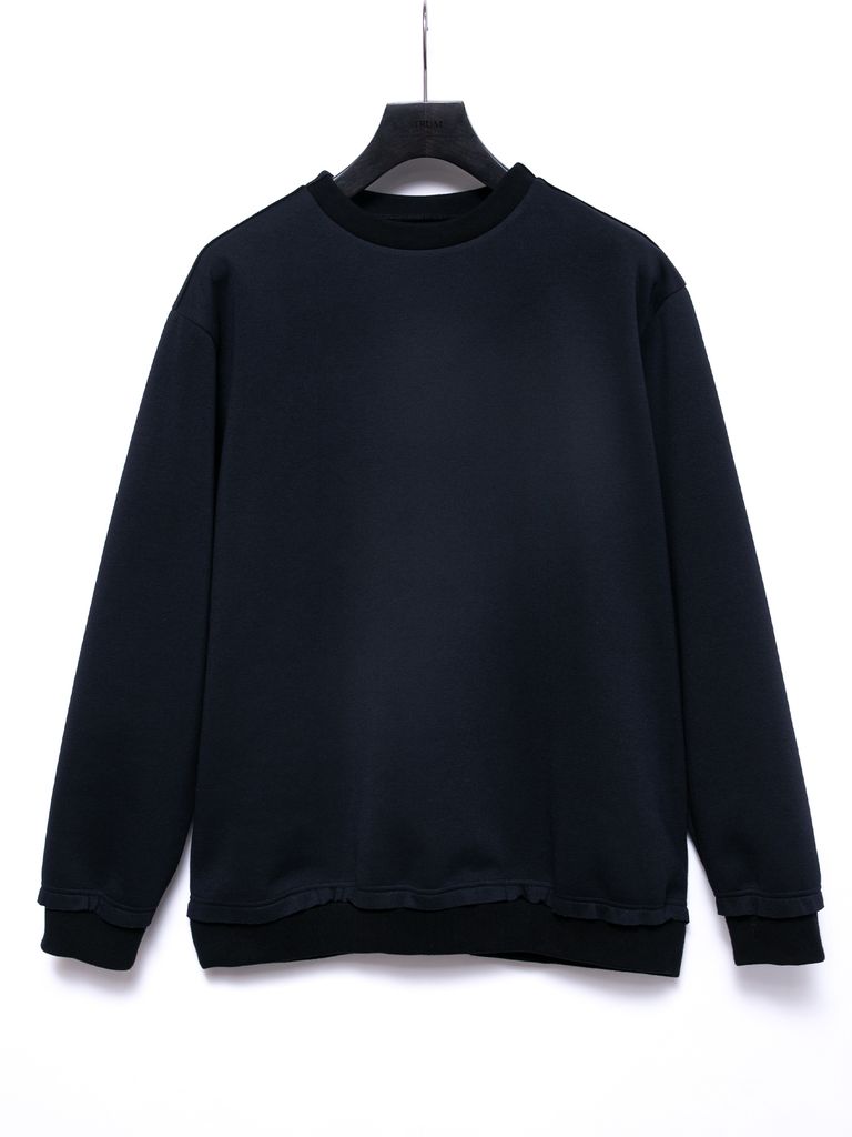 【予約品 4月6日(月) 締切】Three-layer Stretch Cardboard Knit Crew Neck Sweatshirt / スリーレイヤー ダンボールニット クルーネック スウェット / ブラック