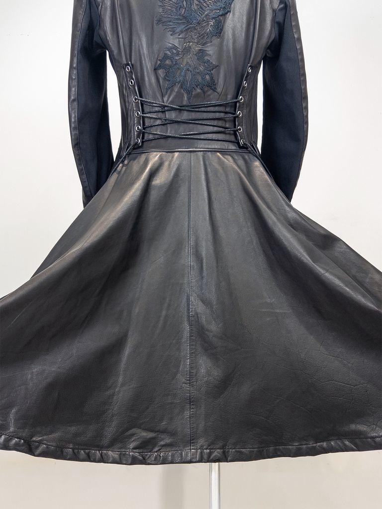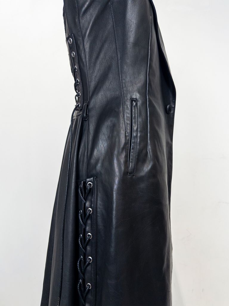 【予約品 4月26日(日) 締切】《Costume Line》Eco Horse Hide Lace Up Flare Jacket / エコホースレザー レースアップ フレアジャケット / ブラック