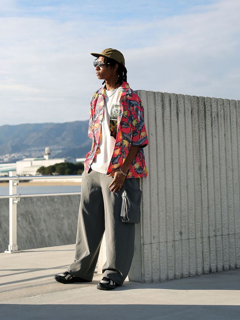 黒人モデル:身長182cm、白人モデル:身長176cm、着用サイズ:L