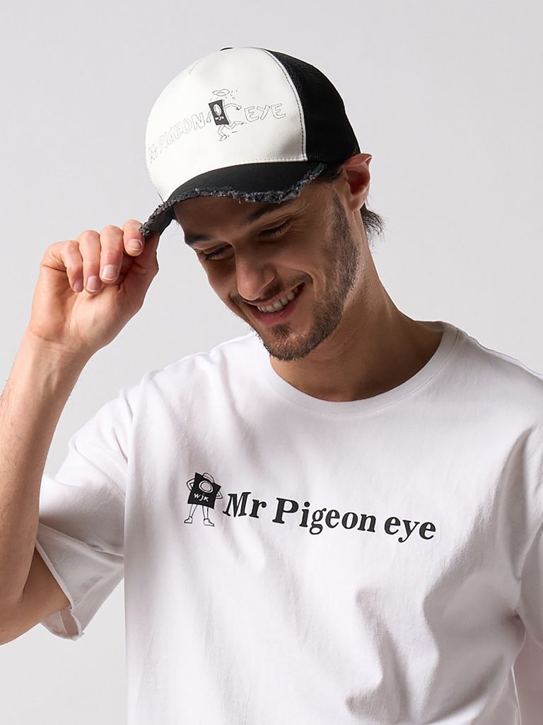 【予約品 4月19日(日) 18時締切】Ohta Design × wjk collaboration:"panic" cut-off mesh cap / "panic" カットオフ メッシュキャップ / ホワイト×ブラック