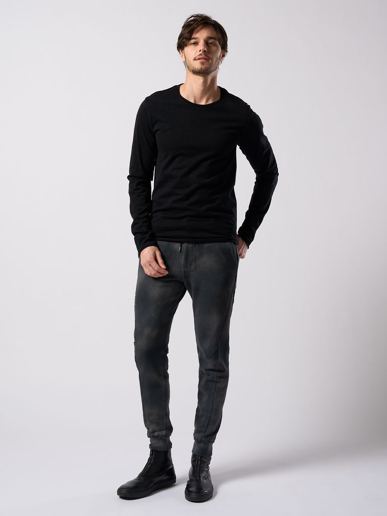 【予約品 4月19日(日) 18時締切】slim cut-off crew-neck L/S / スリムカットオフ クルーネック ロングスリーブ / ディープブラック