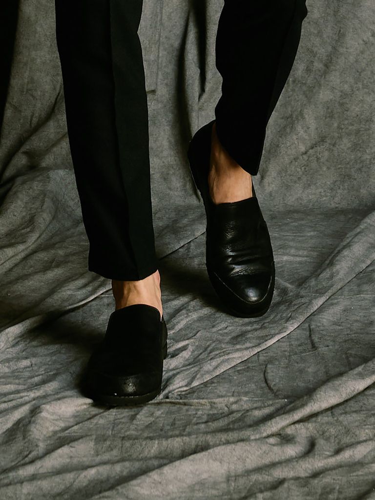 【予約品 4月19日(日) 18時締切】combination slip-on shoes / カーフレザー コンビネーション スリッポン シューズ / ブラック