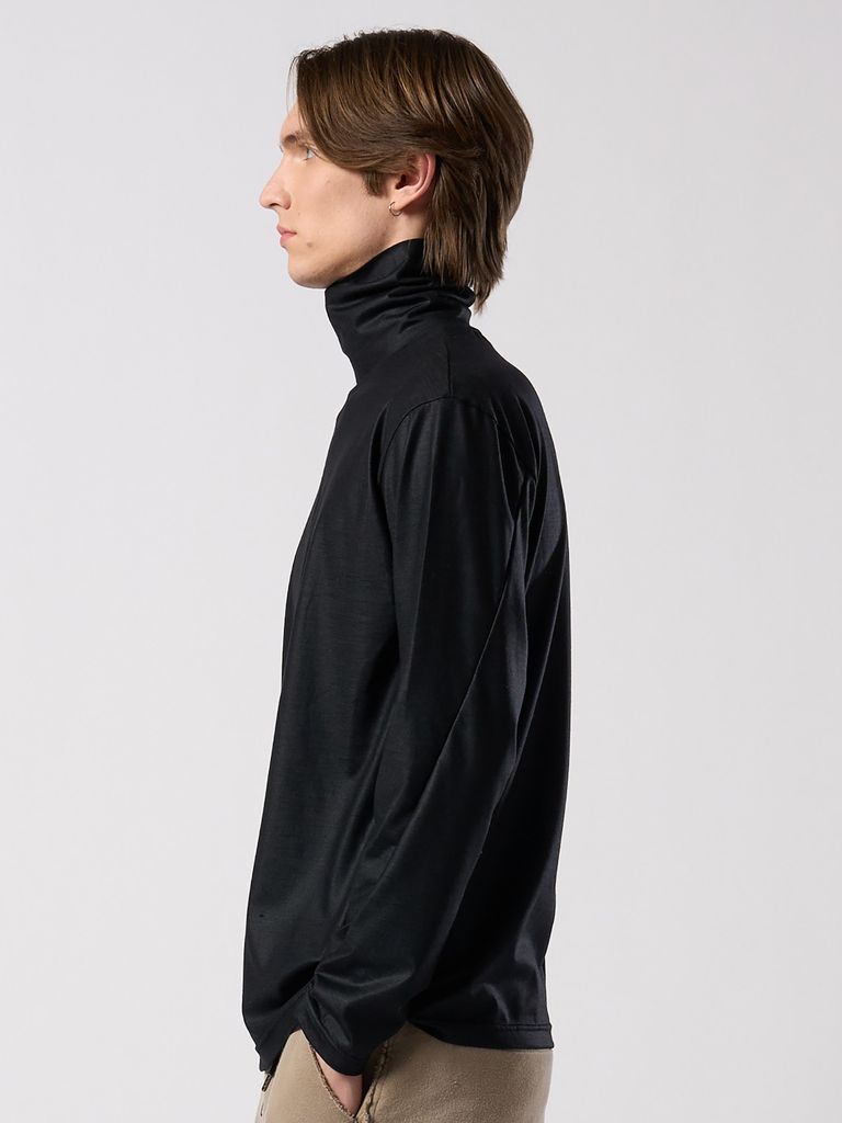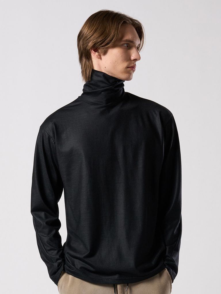 【予約品 4月19日(日) 18時締切】ex.comfy wool turtle / メリノウールジャージー タートルネック / ブラック