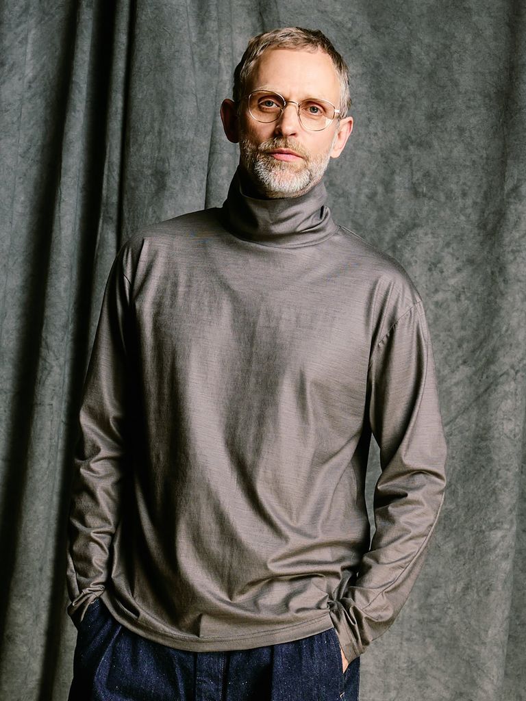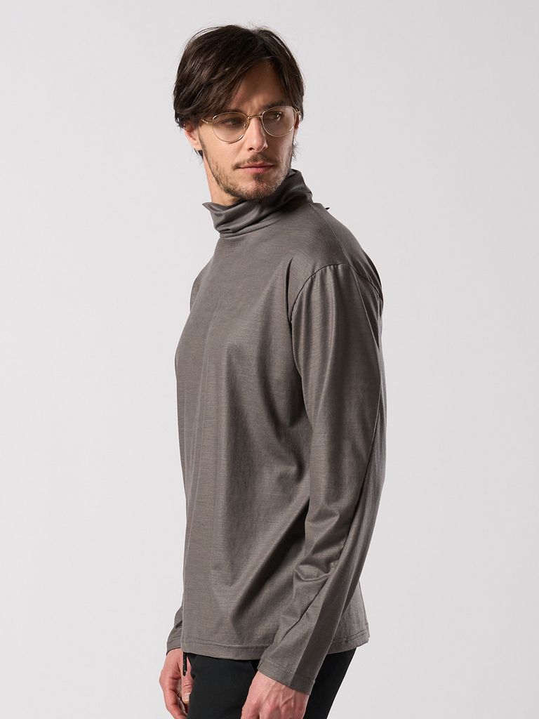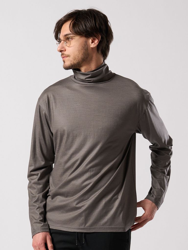 【予約品 4月19日(日) 18時締切】ex.comfy wool turtle / メリノウールジャージー タートルネック / スチールグレー