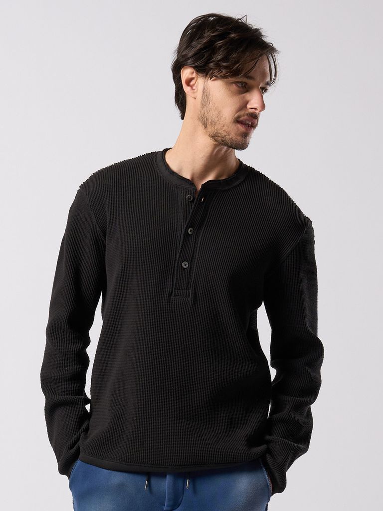 【予約品 4月19日(日) 18時締切】waffle henley L/S / ワッフル ヘンリーネック ロングスリーブ / ブラック