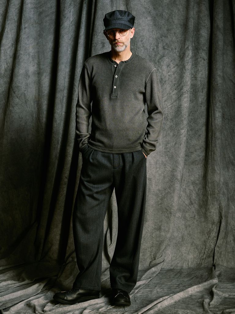 【予約品 4月19日(日) 18時締切】waffle henley L/S / ワッフル ヘンリーネック ロングスリーブ / ブラック