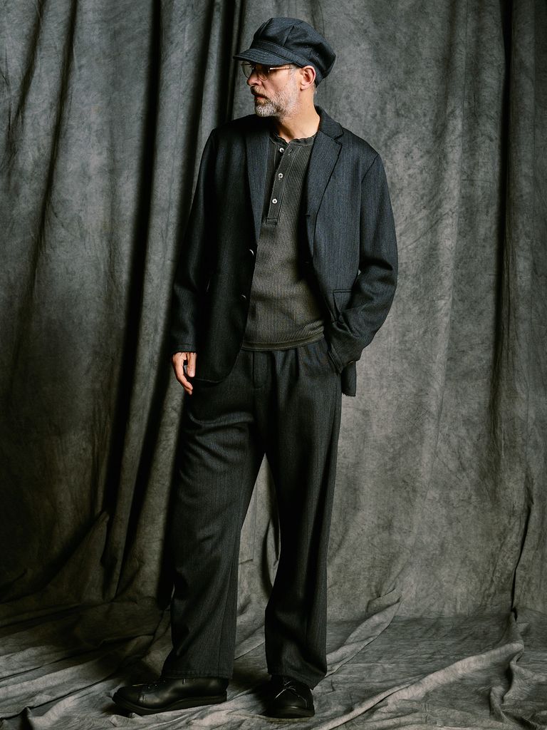 素材の機能性と、wjkらしい無骨なデザイン性を兼ね備えたヘンリーネックです。