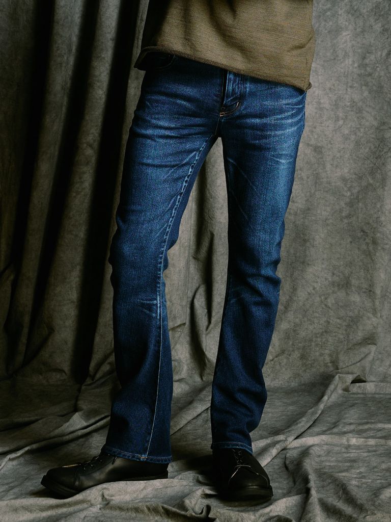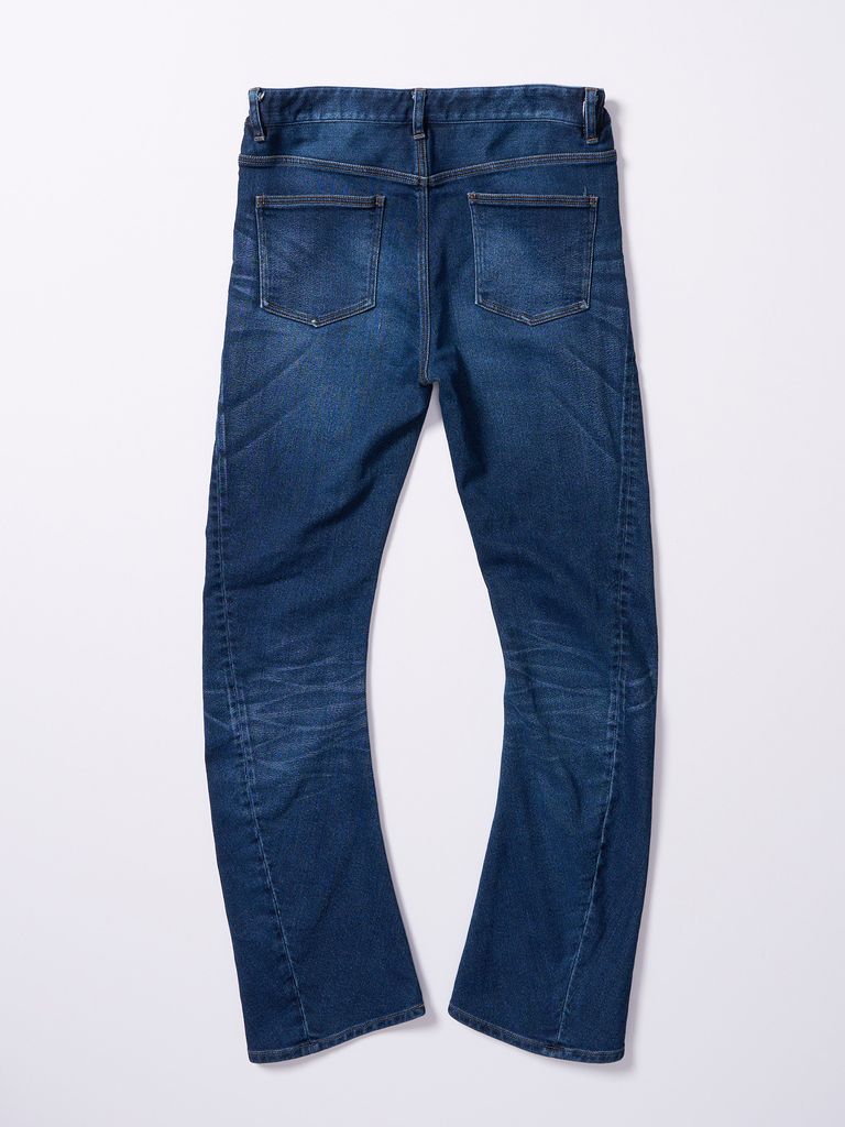 【予約品 4月19日(日) 18時締切】denim jersey 3D banana flare pants / デニムジャージー 3D バナナフレアパンツ / インディゴユーズド
