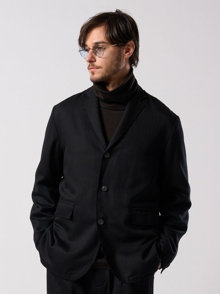 【予約品 4月19日(日) 18時締切】venetian stripe single jacket / ヴェネツィアン ストライプ シングルジャケット / ブラック