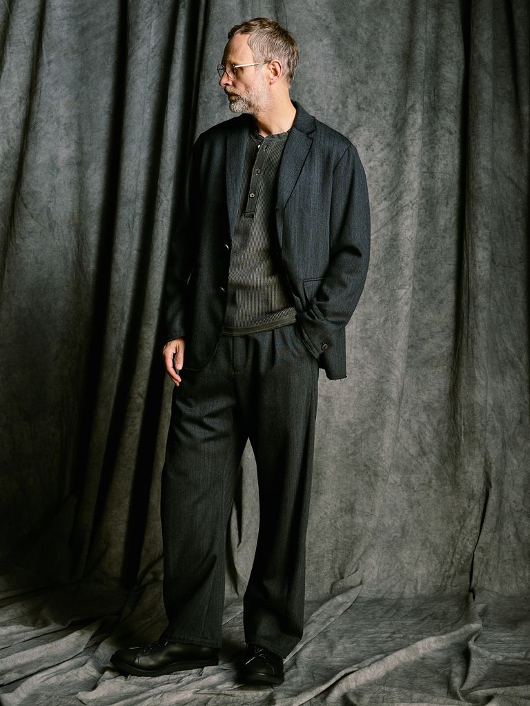 【予約品 4月19日(日) 18時締切】venetian stripe single jacket / ヴェネツィアン ストライプ シングルジャケット / チャコール