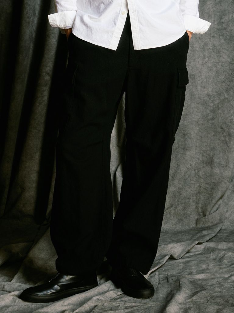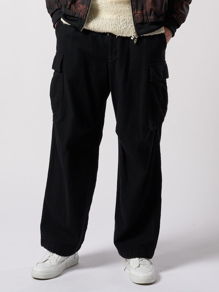 【予約品 4月19日(日) 18時締切】natural blend wool easy cargo / ナチュラルブレンドウール イージーカーゴパンツ / ブラック