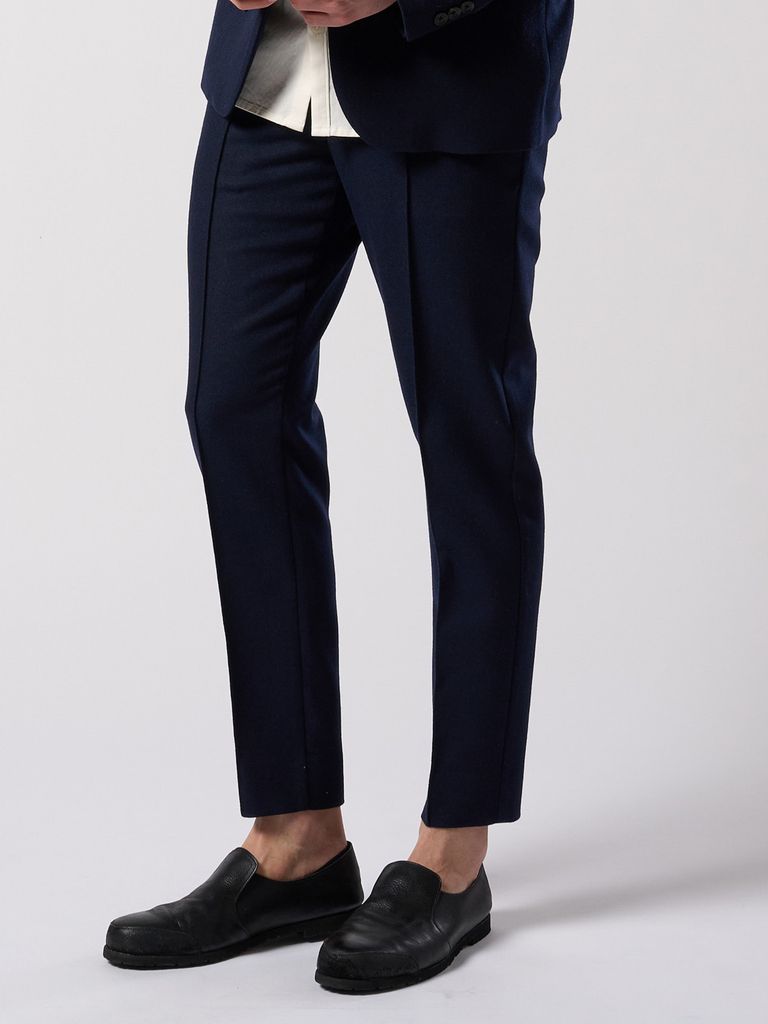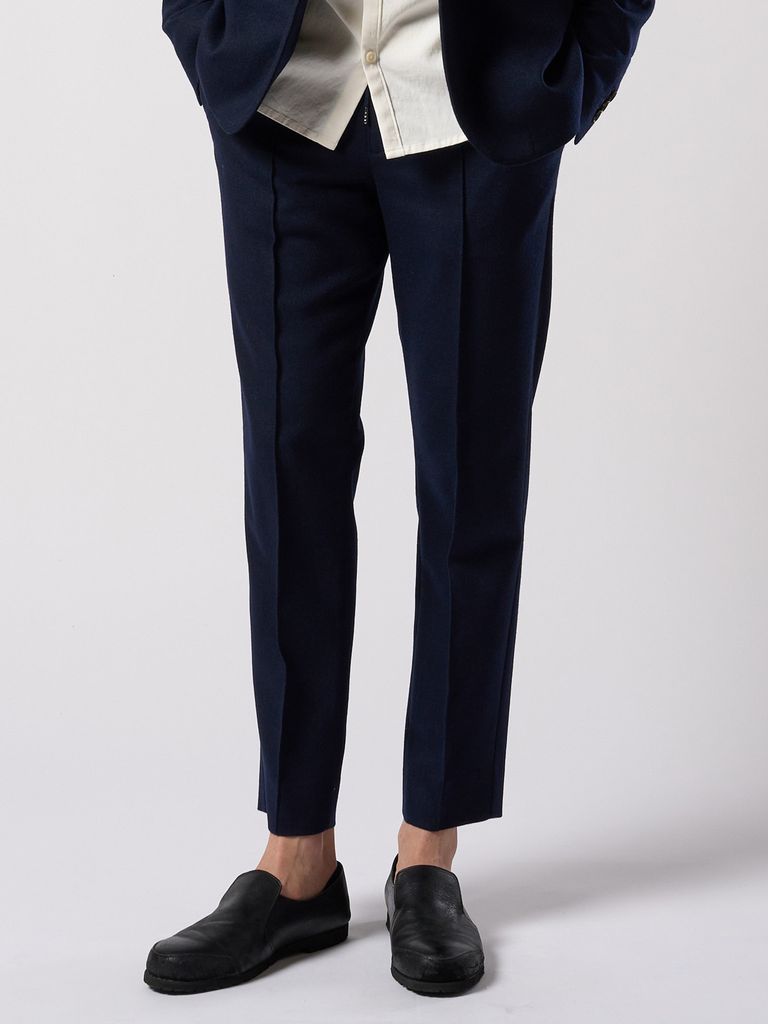 【予約品 4月19日(日) 18時締切】comfort pin-tuck slim slacks / コンフォート ピンタック スリムスラックス / ネイビー