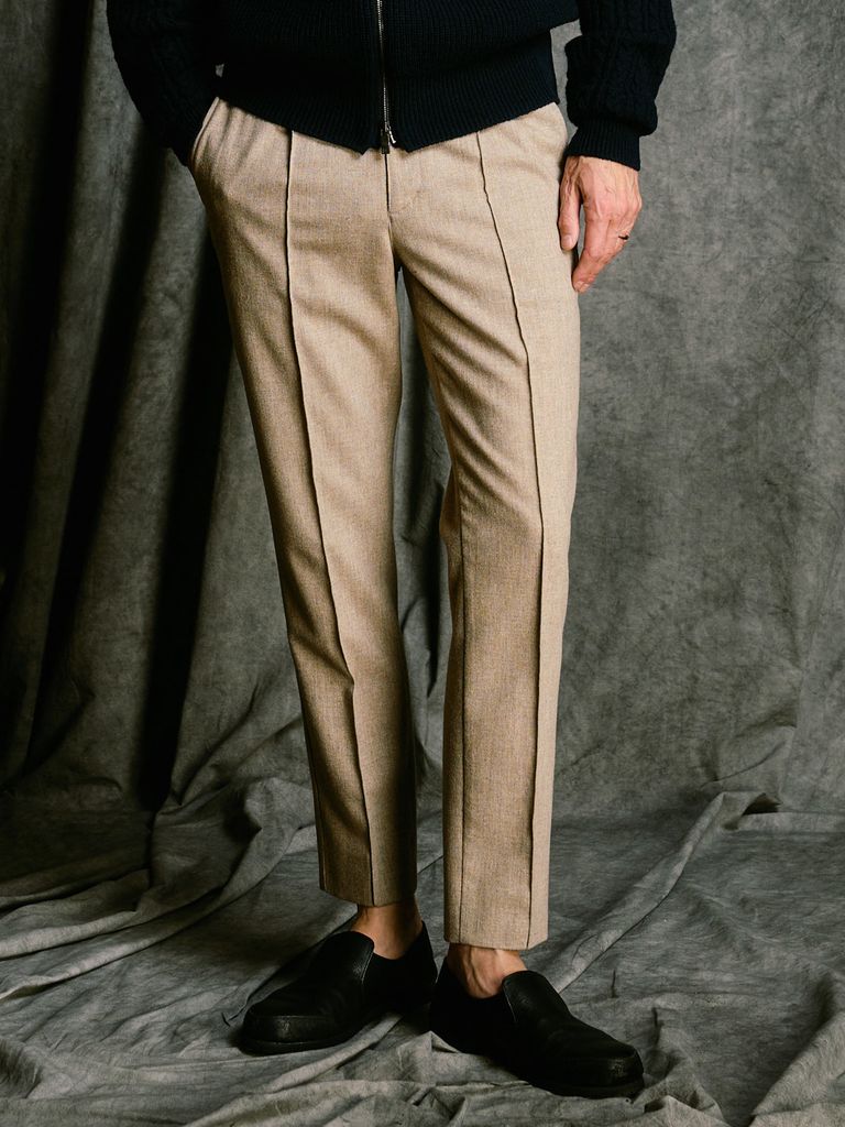 端正なルックスと快適性を兼ね備えた、現代的なスリムスラックス。