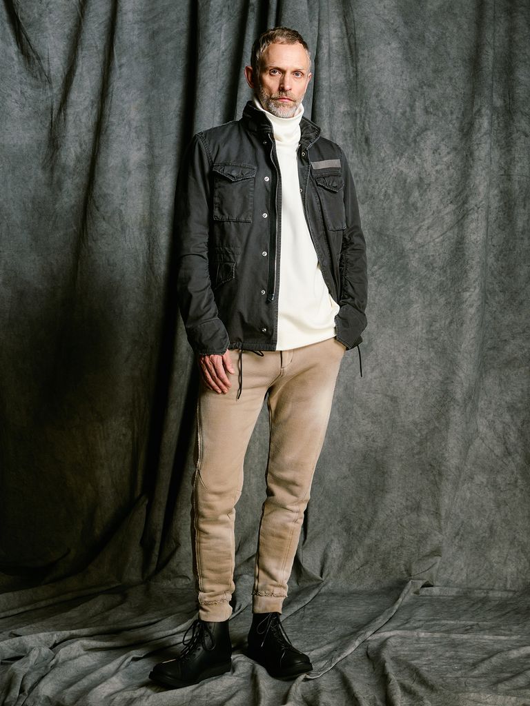 また、立体的に設計された“バナナ形状”の袖は、着用時に生まれる自然なシワが独特の陰影と表情を演出。wjkらしい構築的かつ男らしいフォルムを形成します。