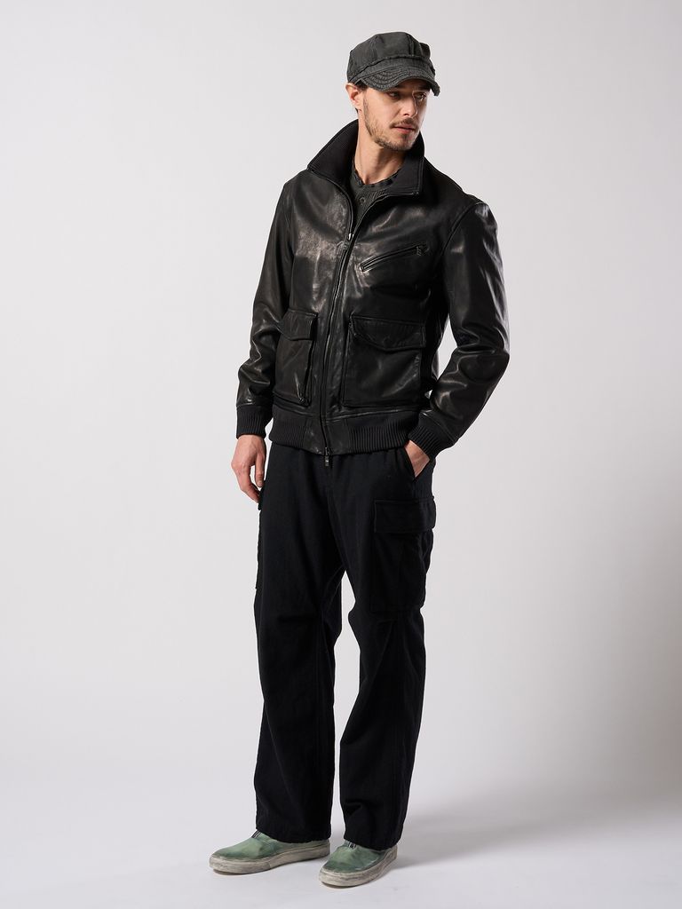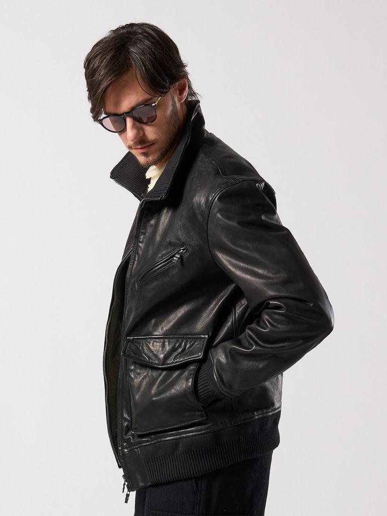 【予約品 4月19日(日) 18時締切】leather rib jersey type A-2 / A-2タイプ レザーリブジャージー / ブラック