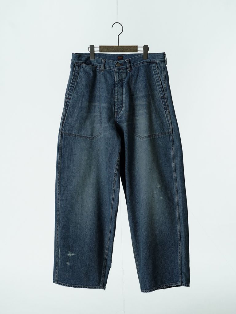 【予約品 5月6日(水) 締切】USN-DENIMTROUSERS damage / ダメージ加工 デニムミリタリーパンツ / インディゴ × 金茶ステッチ 濃