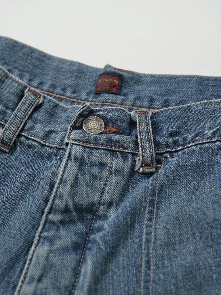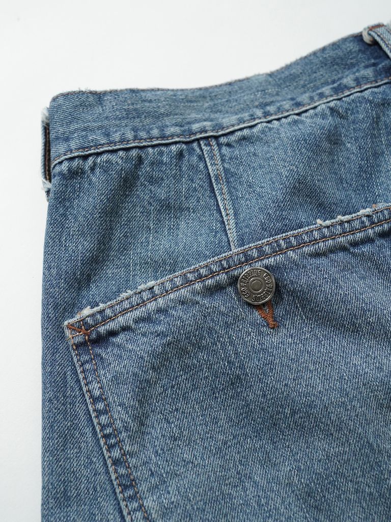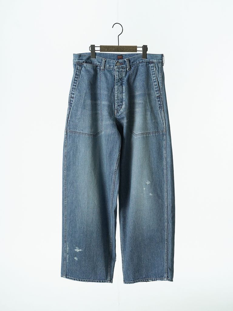 【予約品 5月6日(水) 締切】USN-DENIMTROUSERS damage / ダメージ加工 デニムミリタリーパンツ / インディゴ × 金茶ステッチ 淡