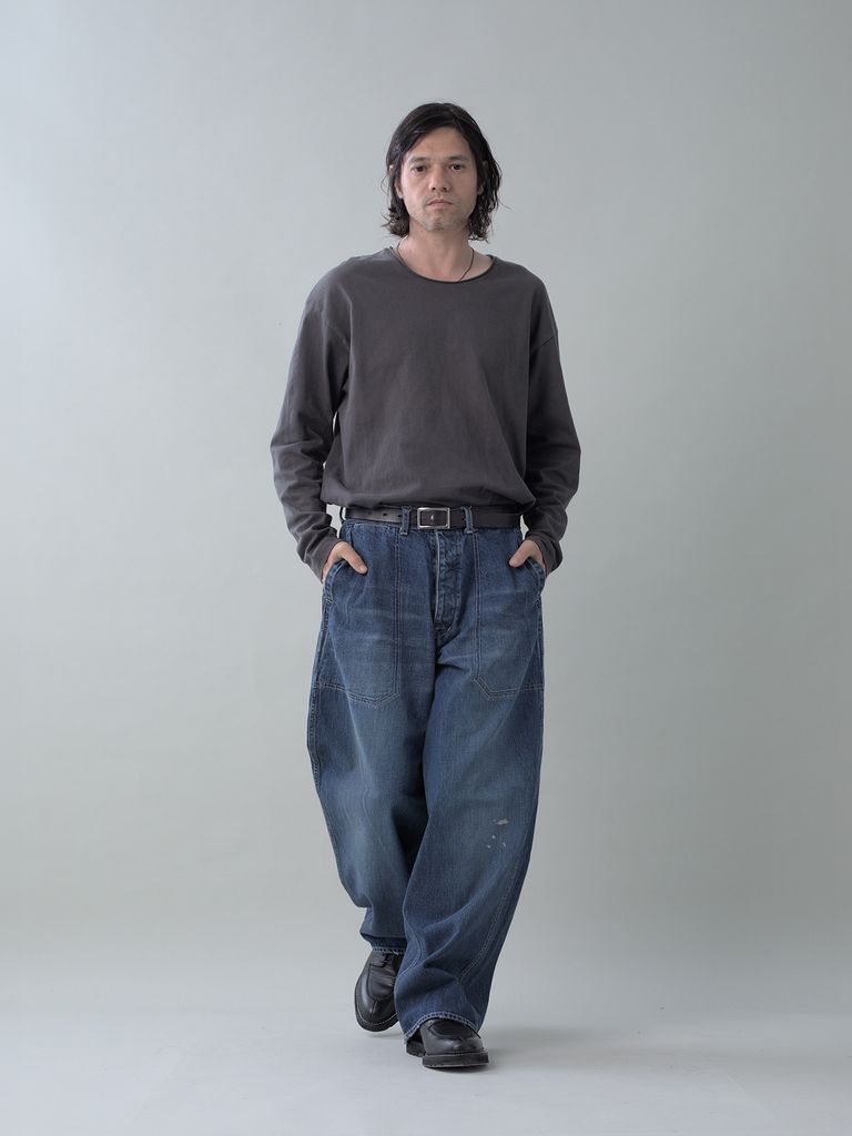 【予約品 5月6日(水) 締切】USN-DENIMTROUSERS damage / ダメージ加工 デニムミリタリーパンツ / インディゴ × 生成りステッチ 濃