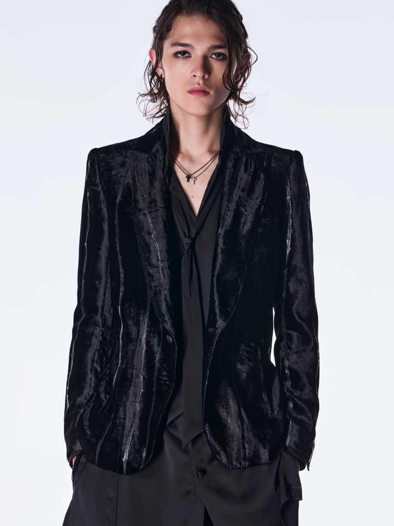 【予約品 6月29日(月) 締切】TOGE Velvet Peaked Jacket / ベルベット ピークドラぺル ジャケット / ブラック