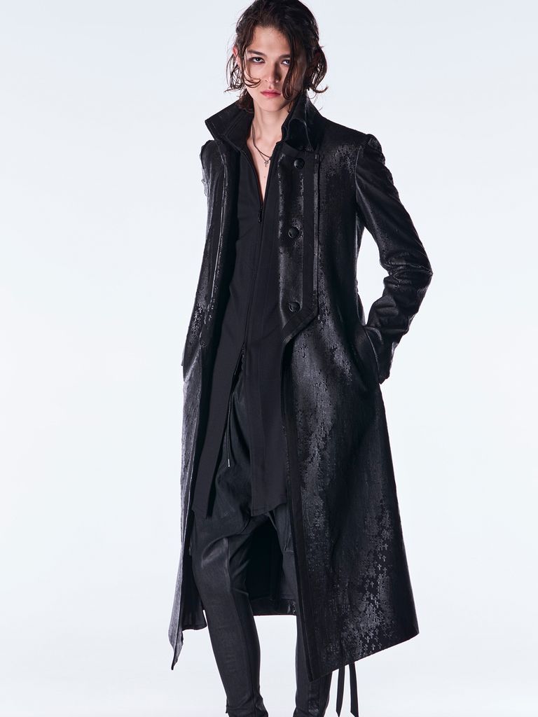 【予約品 6月29日(月) 締切】Cross Dot Fleece Long Napoleon Coat / ロング ナポレオンコート / ブラック
