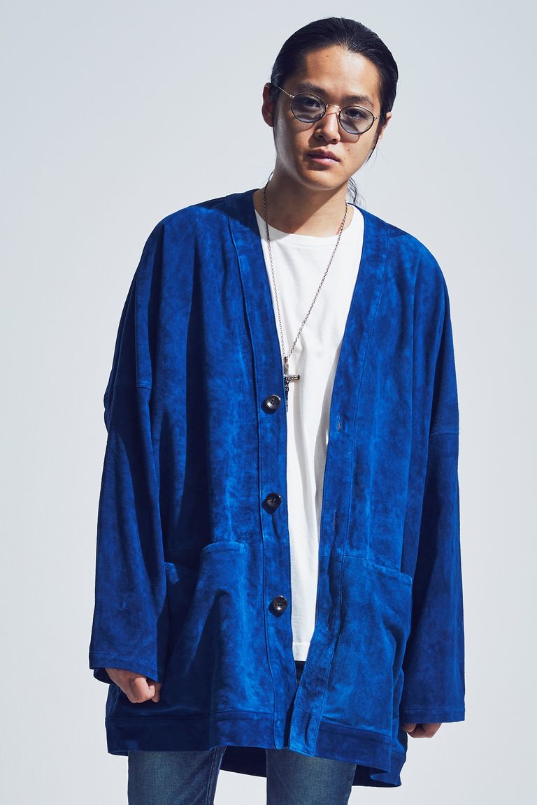【予約品】 地生カーフスエード "KURT" オーバーカーディガン / BLUE 【STRUM】 《2月中~2月下 入荷予定》